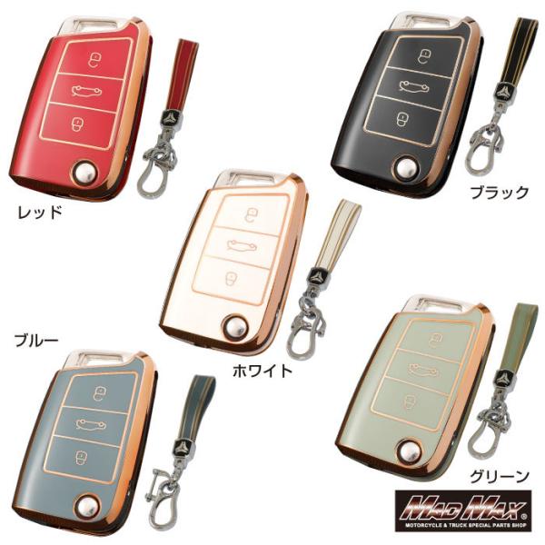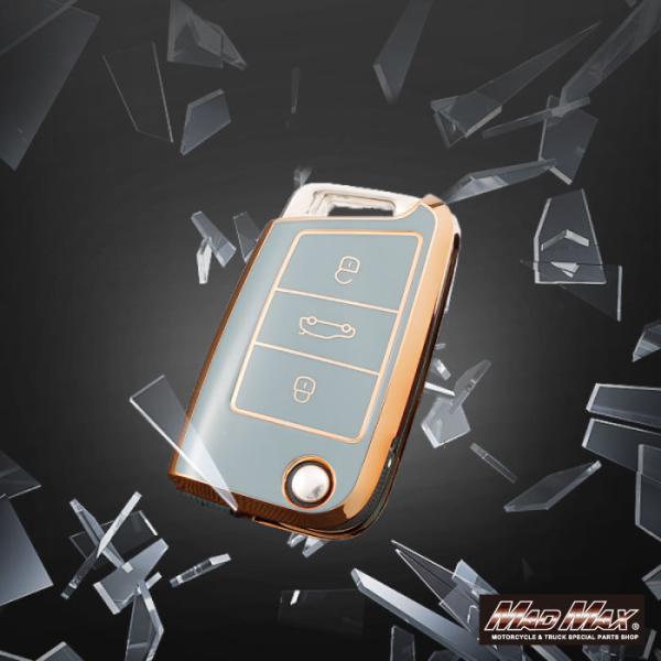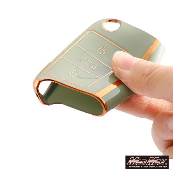 メール便送料無料!!フォルクスワーゲン専用 ゴールドライン TYPE B 3ボタン式 TPUソフト スマートキーケース 各色