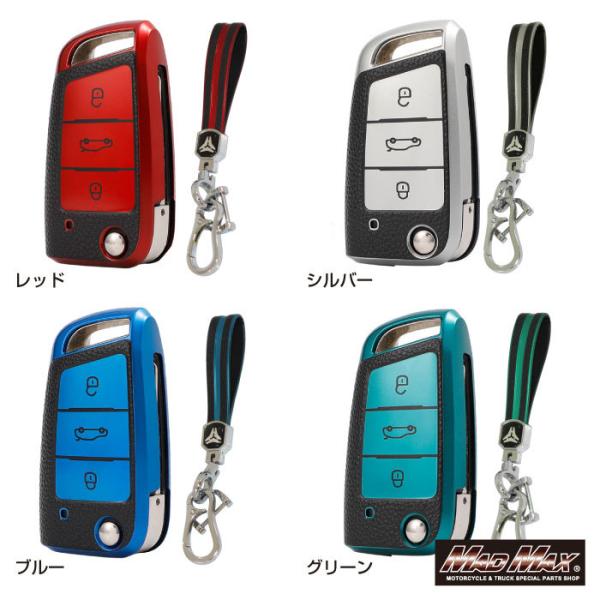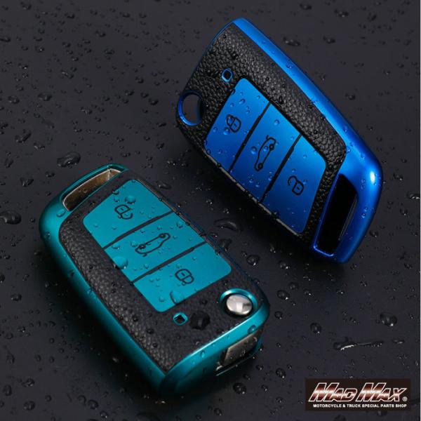 メール便送料無料!!フォルクスワーゲン専用 レザー調 TYPE E 3ボタン式 TPUソフト スマートキーケース 各色