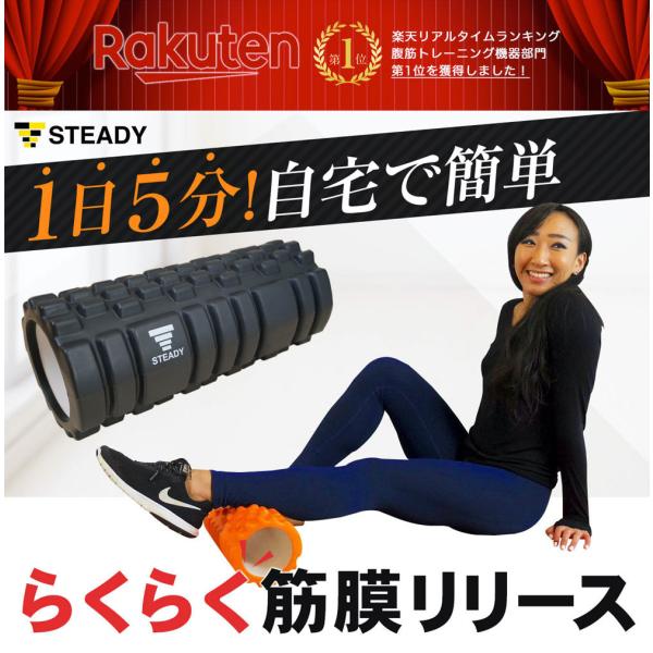 フォームローラー 筋膜リリース ストレッチローラー 家庭用 高密度EVA 3種突起 トレーニング動画付き 収納袋付 黒 365日保証 STEADY ST106