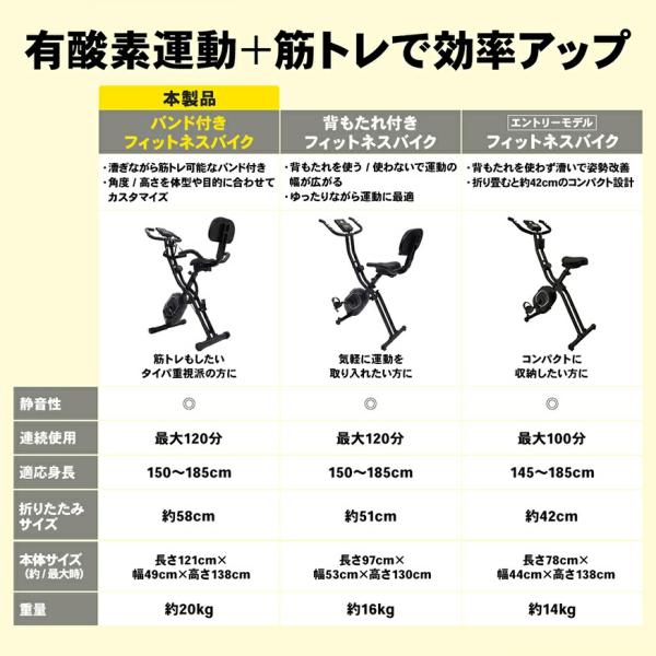 フィットネスバイク 静音 家庭用 バンド付き 有酸素運動 心拍表示 エアロバイク コンパクト 省スペース 時短トレーニング 365日保証 STEADY ST143