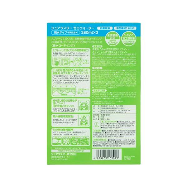 シュアラスター 洗車用品 ガラス系ナノコーティング剤 ゼロウォーターバリューパック 親水タイプ 280ml×2本 SurLuster S-109