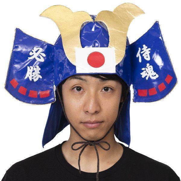 応援 侍兜 青 かぶと 帽子 かぶりもの 野球 サッカー ラグビー チームジャパン 応援グッズ ブルー