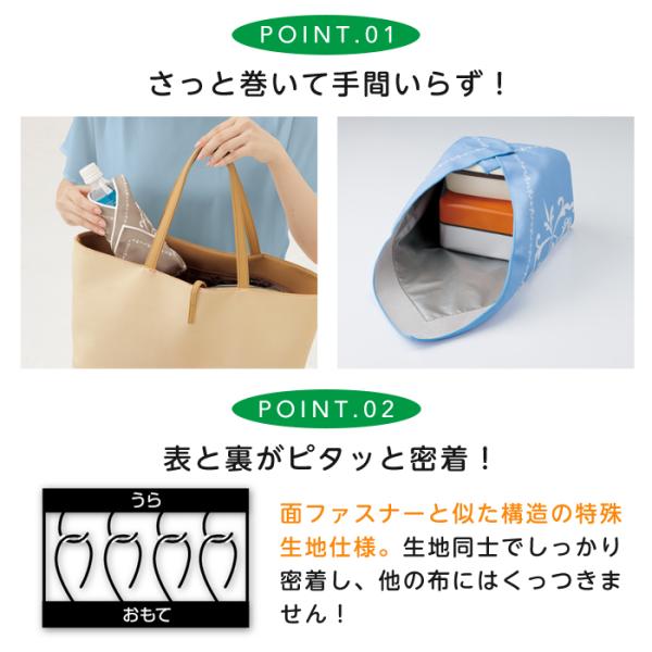 ・お弁当や食品の持ち帰り、飲み物の保冷など、日常のさまざまなシーンで使える保冷保温クロスです。