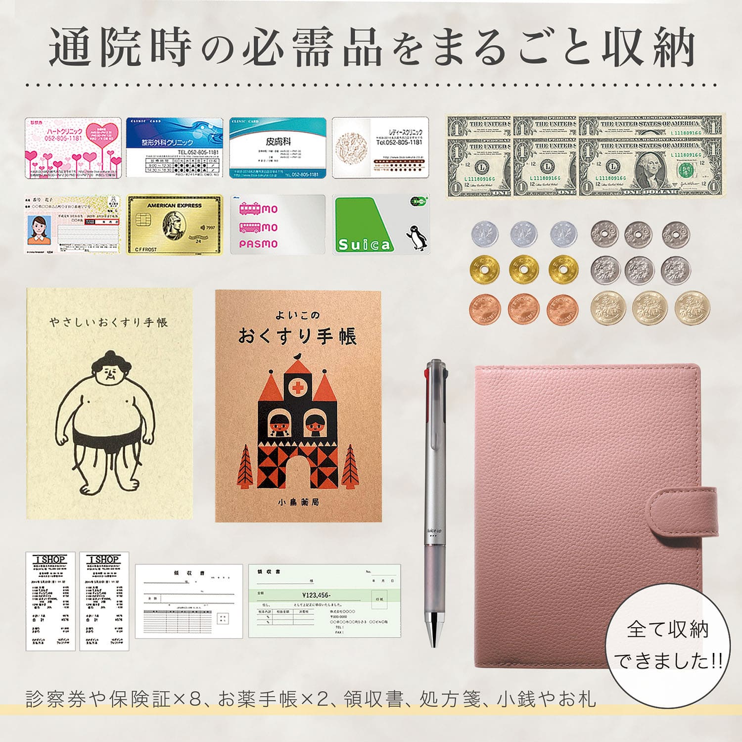 お薬手帳 ケース 小銭入れ お薬手帳2冊 薄型 革 スキミング防止 大容量 通院用 母子手帳 カバー 通院 レディース メンズ ギフト プレゼント 出産祝い / KT3