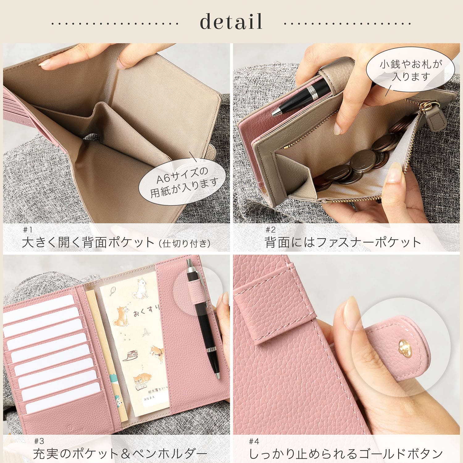 コンパクトながら使い勝手が良く、バッグの中も整理しやすい設計です。実用性が高く、シンプルで飽きのこないデザインなので、自分用にはもちろん、誕生日や母の日、就職祝い、出産祝いなどのギフトとしても喜ばれます。