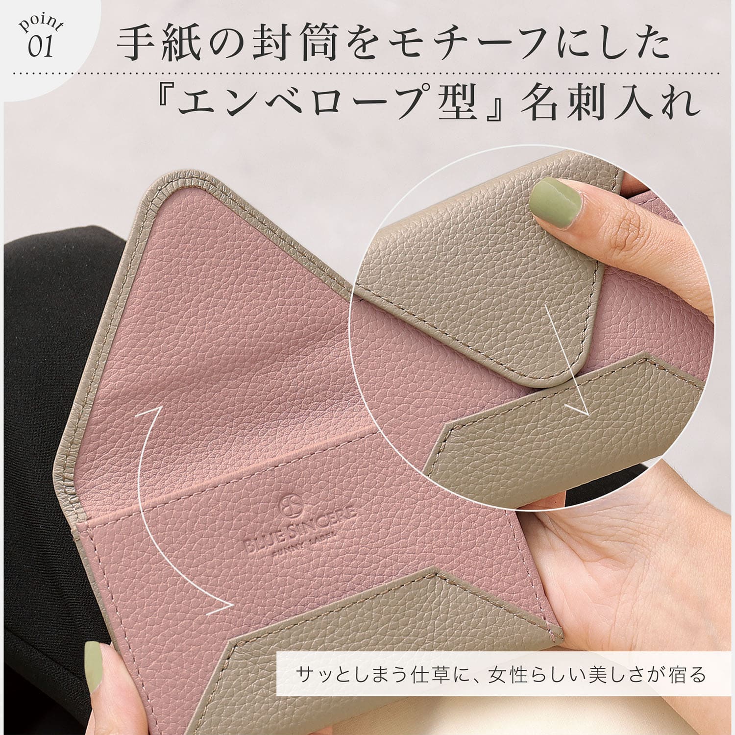 エンベローブ 名刺入れ 牛本革 レディース 薄型 薄い スリム コンパクト 封筒デザイン 名刺ケース カードケース ギフト 本革 レザー 皮 女性用 / LM3