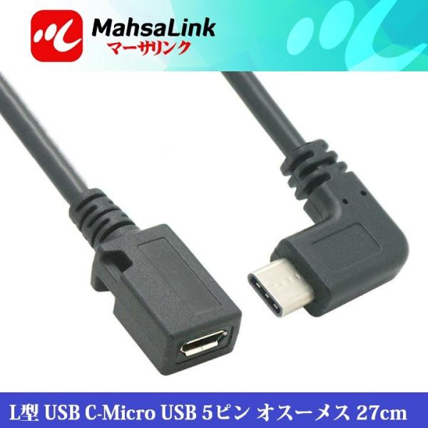 商品名 L字 USB Type C to USB2.0 Micro USB 変換ケーブル 27cm/USB C-2.0 Micro 5ピン ケーブル オス−メス