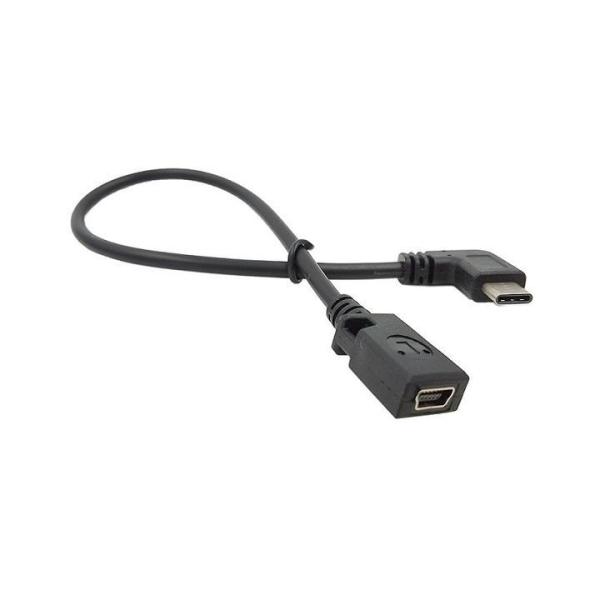 L字 USB Type C to USB2.0 Micro USB 変換ケーブル /USB C-USB Mini 5ピン アダプタ ケーブル オス−メス 27cm(Micro USBメス、Mini USBメス)2タイプ選択