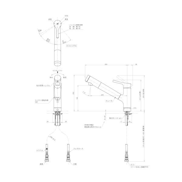 TOTO キッチン用水栓金具 TKS05307J GGシリーズ 台付シングル混合水栓 浄水器兼用(吐水切り替えタイプ) ※TKGG31E・TKGG38E1取換推奨品