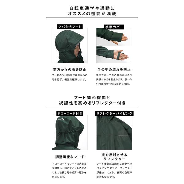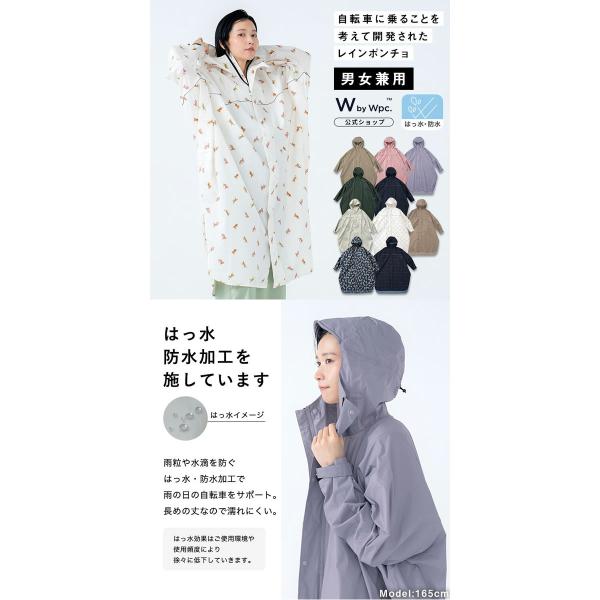 Wpc. レインコート レインバイシクルスリーブポンチョ レインウェア レディース 自転車 ロング おしゃれ 大きいサイズ 撥水 防水 通勤 通学 無地 ドット