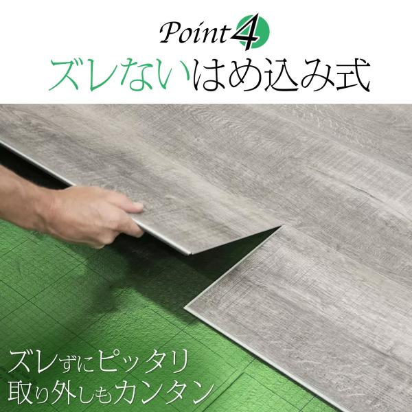 1.施工が簡単:サネをはみこむだけで隙間がなく、誰でも簡単に設置ができるフロアタイルです。