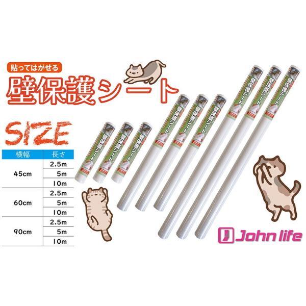 johnlife ひっかき傷 壁紙保護シート 高さ45cmx長さ5m 厚手 はがせる 壁の傷防止 猫 防水 シール 半透明 粘着力