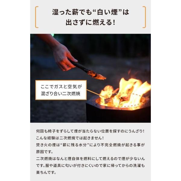 二次燃焼 焚き火台 オクタゴンブラック 焚火台 キャンプ アウトドア 高火力