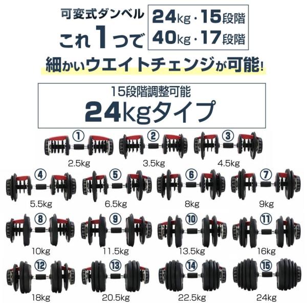 15段階調整 可変式ダンベル 24kgタイプです。