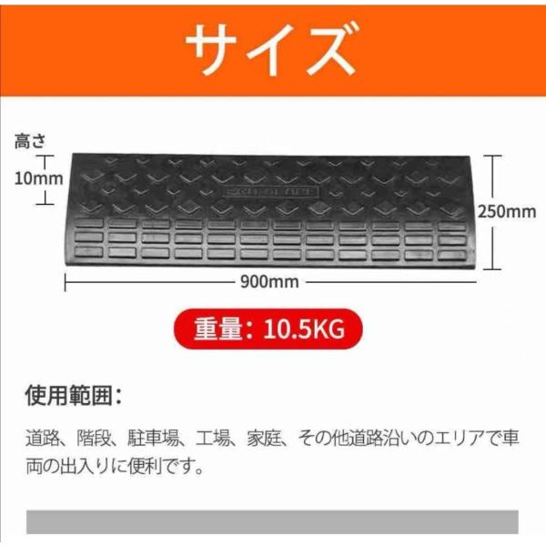段差スロープ 1個 ゴム製 高さ10cm 幅90cm 滑り止め 車 駐車場 車椅子 自転車