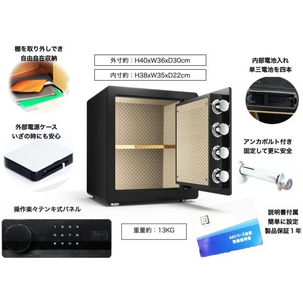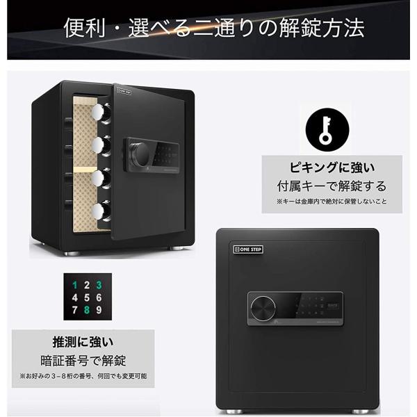 金庫 43L テンキー式 緊急キー セキュリティーボックス 家庭用 業務用 盗難防止 防犯 おしゃれ ブラック