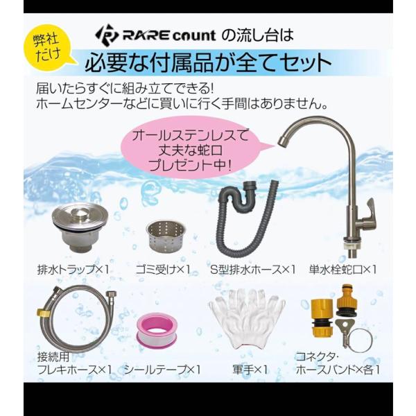 ●庭先やベランダ、アウトドア、キャンプ、工事現場など活躍の場は様々。お庭でのガーデニングやBBQなどで活躍する流し台。サビに強いステンレス製なので、屋外でも安心して使える。蛇口付きで台所に近い感覚で使え、用具の水洗いや野菜洗いなどに。