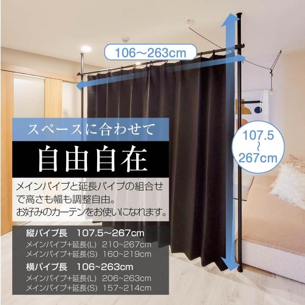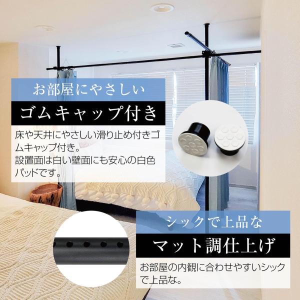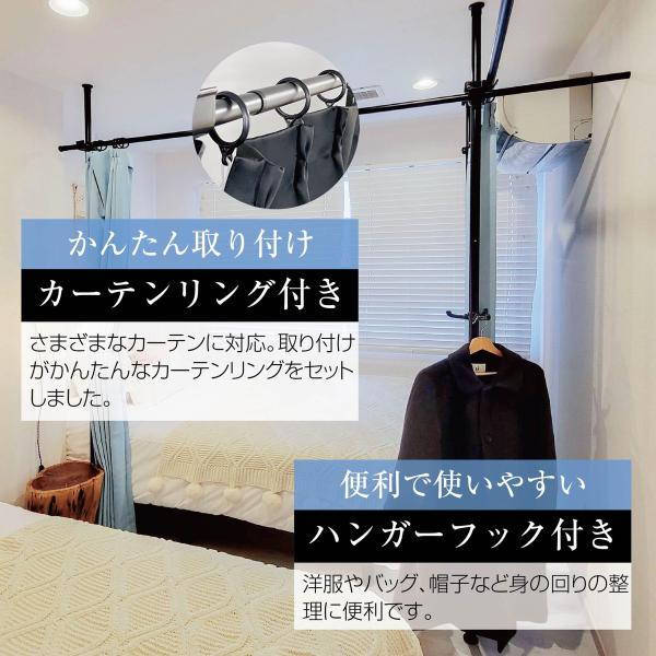 Yoquna 突っ張り カーテンポール 間仕切り カーテン 仕切り 目隠し 突っ張り棒 つっぱり カーテンリング付 パーテーション 色 黒 ブラック 白 ホワイト 2ポール