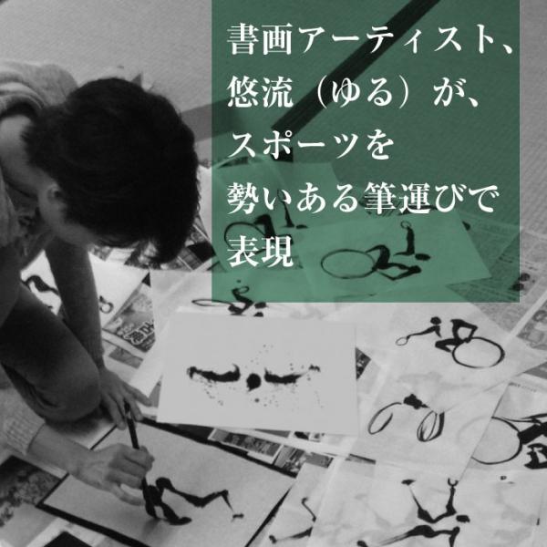 スポーツを勢いある筆運びで表現する書画アーティスト、悠流(ゆる)の「瞬墨書(しゅんぼくしょ)」でポストカードを作りました。
