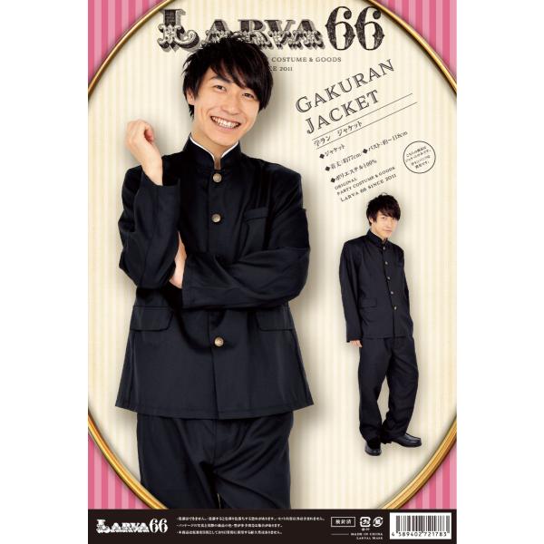 ●商品説明:学ランを着たことない人は試してみてはどうでしょう。青春時代に戻れる制服かも。真面目系にもヤンキー風にもなれます。イベント、応援、学園祭、舞台、演劇などでも使えるかも。●サイズ:着丈:約77cm、バスト:約〜118cm●セット内容:ジャケット●素材:ポリエステル100%