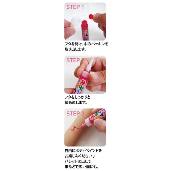 ●商品説明:水性カラー 全身にアートしちゃおう!! 大きな面積も一気にペイント!●成分:グリセリン・チタン・水性アクリル樹脂・顔料色素・尿素・精製水●パッケージサイズ:約縦7.5×横16.5×奥2cm