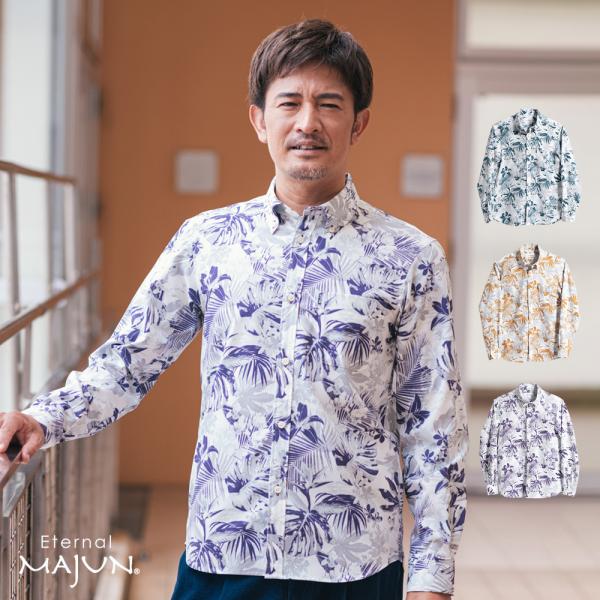 かりゆしウェア 沖縄 アロハシャツ MAJUN マジュン かりゆし 結婚式 メンズ長袖シャツボタンダウン 送料/代引手数料無料 サマークーリッシュL/S