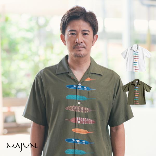 かりゆしウェア 沖縄 アロハシャツ MAJUN マジュン かりゆし 結婚式 メンズ半袖シャツ開襟 送料/代引手数料無料 フェザーシャツ