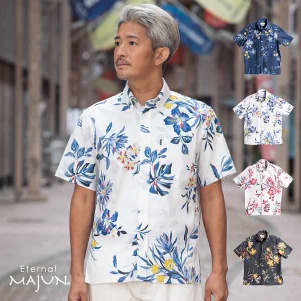 かりゆしウェア 沖縄 アロハシャツ MAJUN マジュン かりゆし 結婚式 メンズ半袖シャツボタンダウン 送料/代引手数料無料 エターナウ