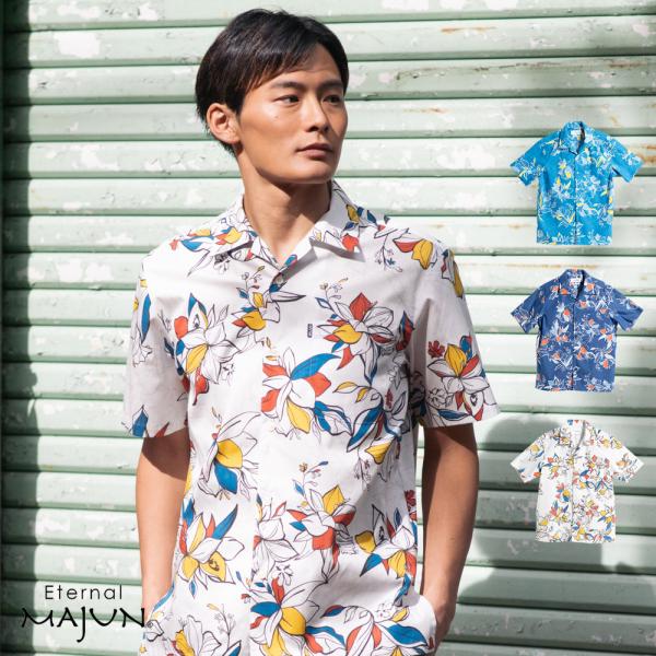かりゆしウェア 沖縄 アロハシャツ MAJUN マジュン かりゆし 結婚式 メンズ シャツ 大きいサイズ 送料無料 ミッドサマーブーケ