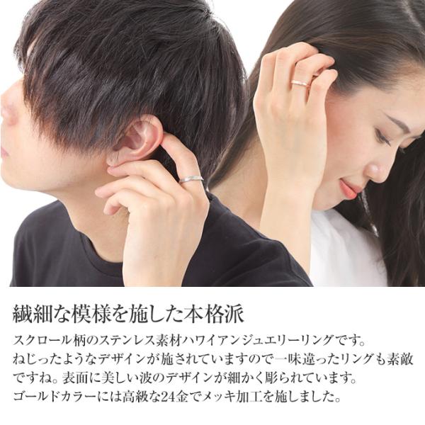 ハワイアンジュエリー指輪 リング 人気 メンズ レディース 選べる3色 ペア レディス ladys mens サージカルステンレス 316L ウエーブ 波柄 スクロール