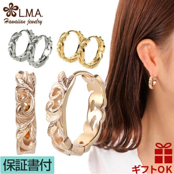 ハワイアンジュエリーピアス フープ ワンタッチ 【選べる3色】 サージカルステンレス ピンクゴールド シルバー イエローゴールド 波 マイレ