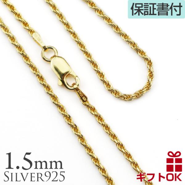 ハワイアンジュエリーネックレス チェーン シルバー ロープ イエローゴールド コーティング シルバー925 40cm 45cm 50cm 太さ約1.5mm 長さ選べる