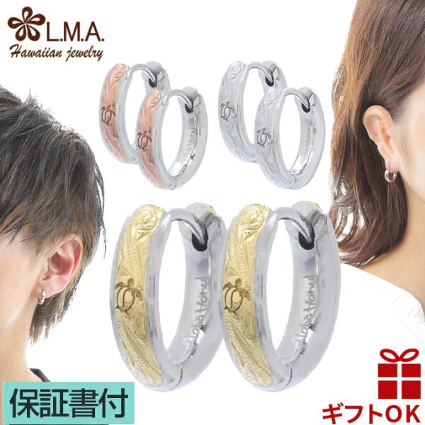 ハワイアンジュエリー ピアスフープ ペア サージカル ステンレス ホヌ スクロール 波