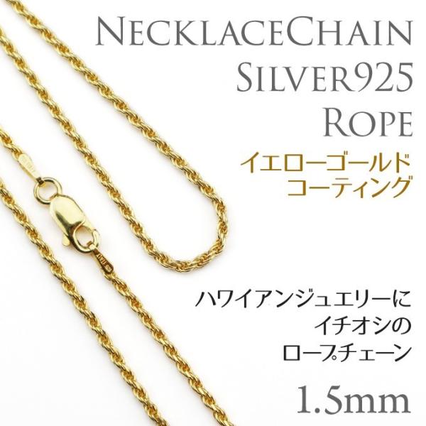 ハワイアンジュエリーネックレス チェーン シルバー ロープ イエローゴールド コーティング シルバー925 40cm 45cm 50cm 太さ約1.5mm 長さ選べる