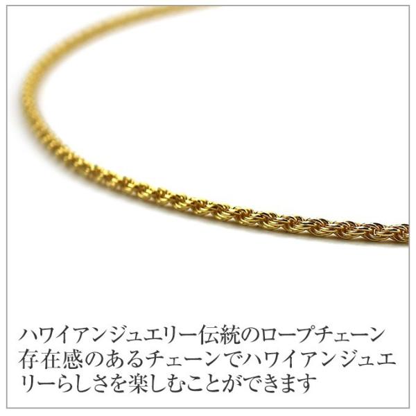 ハワイアンジュエリーと相性ぴったりのロープチェーンです。silver925の素材にイエローゴールドコーティングなので18金や14金の商品よりお手頃です。長さは約45cm・幅は約1.5mmになります。ハワイアンジュエリー チェーン イエローゴールドコーティング シルバーロープチェーン1.5mm KGROPE4515 メンズ レディース Men's レディス