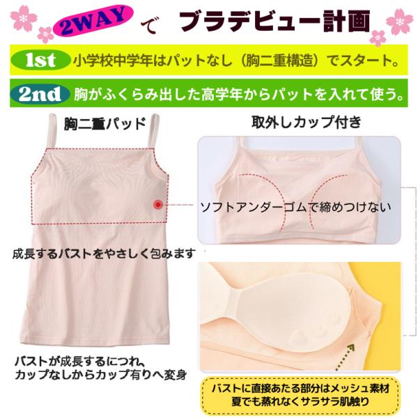 カップ付きキャミソール ブラトップ 女の子 インナー 高学年 中学生 女子 インナー 肌着 下着 140 150 160 スクールインナー 体育インナー 2枚セット
