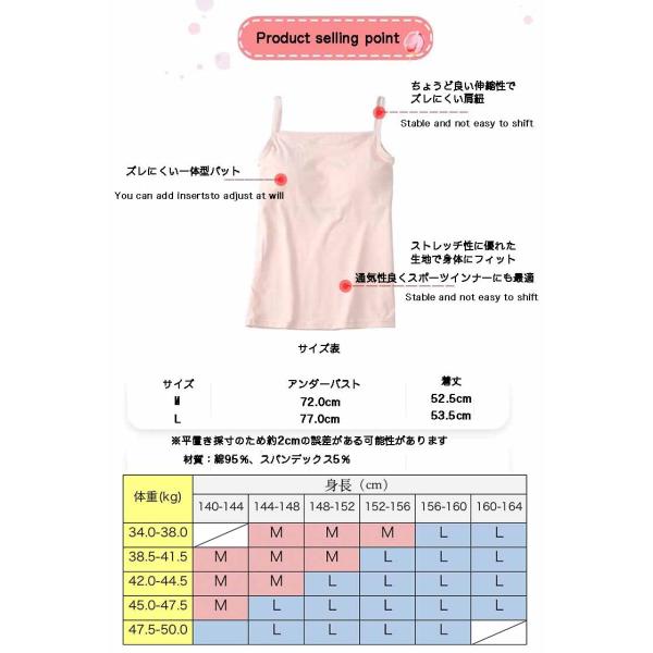 スポブラ パットつきキャミソール 小3 小4 小5 小6 中1 中2 中3