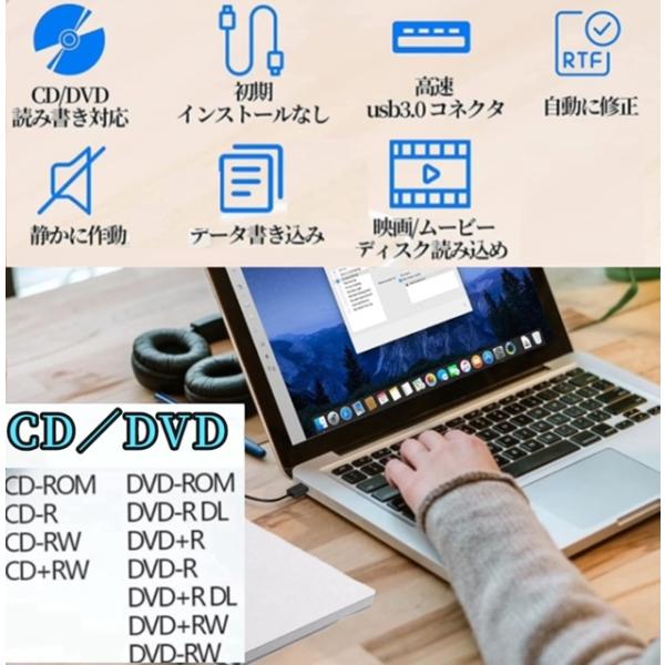 DVD/CDドライブ外付け DVD/CDプレイヤー USB3.0&Type-C