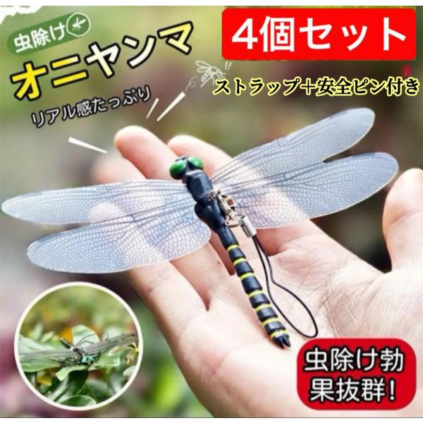 4個入り12cm〜20cm /オニヤンマ虫除けくん 効果おにやんまリアルトンボ君虫よけ虫対策 ピン&ストラップ付き釣り山登りキャップ屋外ゴルフ昆虫 バチ