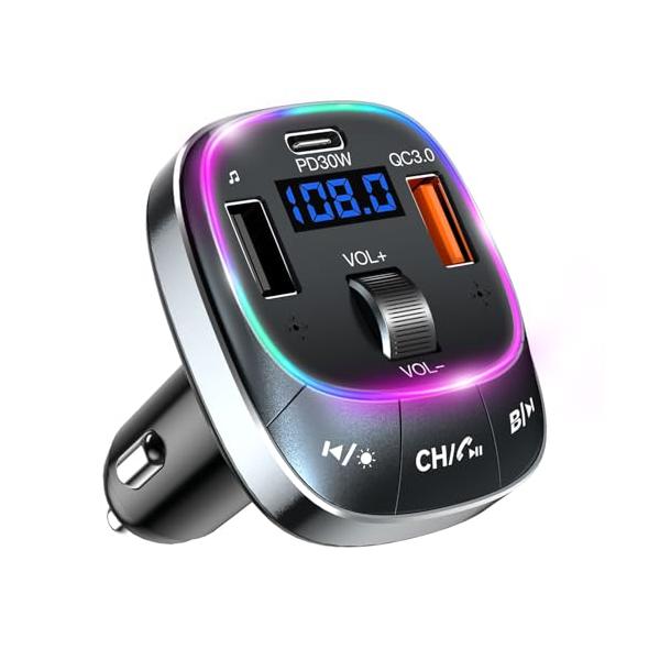 【2026新登場】FMトランスミッター Bluetooth 5.3 デュアルマイク ノイズ軽減 音楽再生モード 車載充電器 3つポート USB&
