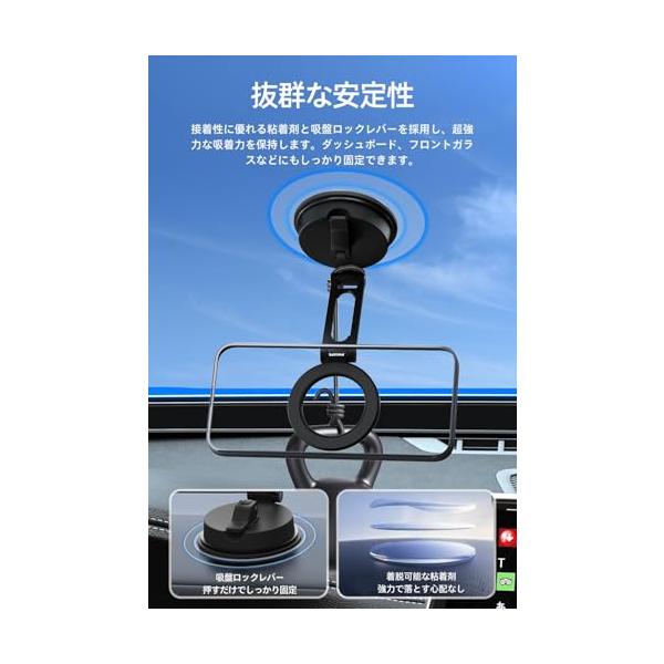 Philips (フィリップス) マグネット車載スマホホルダー magsafeホルダー 超強力吸着 真空吸盤 携帯ホルダー 多角度調整 360°