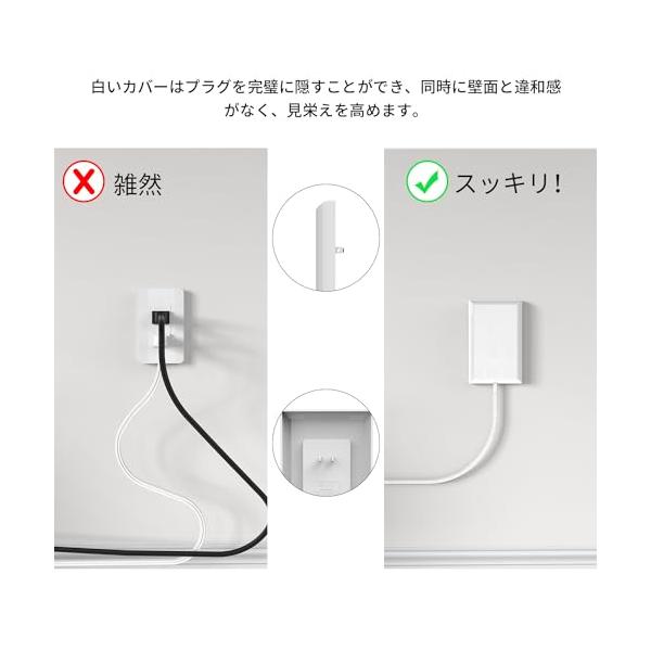 ・「美観・おしゃれ」:おしゃれな電源タップです。カバーはプラグを隠すことができ、壁に溶け込んで、壁面と違和感がありません。昔の雑然とした壁面を変え、自宅やオフィスなどの場所をよりすっきり、美しくすることができます。