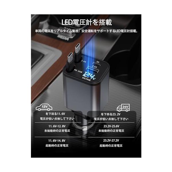 ・【LED電圧表示&安全保護機能搭載】 高精度のLEDデジタル電圧表示付きで、車のバッテリー電圧をリアルタイムに監視。電圧異常による車両や接続機器の損傷を防止します。12V/24V全車種対応