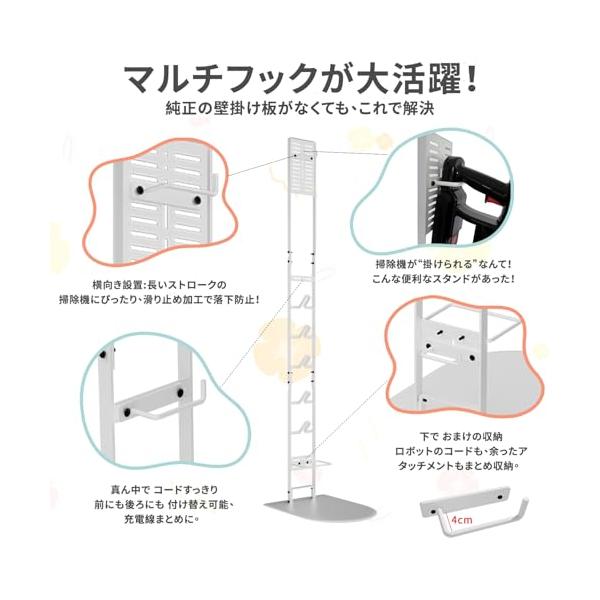 ・【創新のマルチフックで幅広く対応】純正壁掛け板がない掃除機も安心!グリップ厚4cm以内ならマルチフックで解決。取り付け自由自在で、アクセサリー収納やコード整理にも。