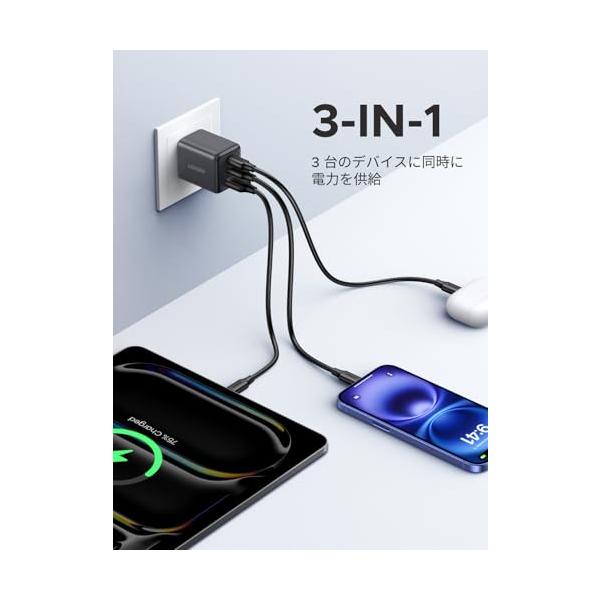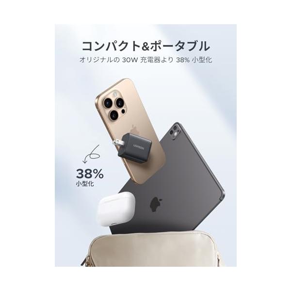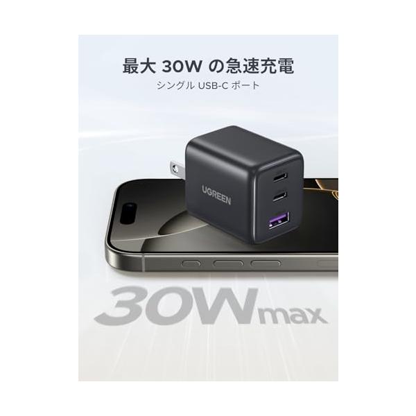 UGREEN 充電器 type-c 30W (2*USB-C+1*USB-A) 【PSE技術基準適合/PD3.0対応/30W急速充電/コンパクト