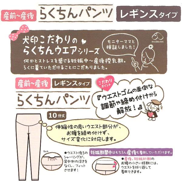メール便送料無料 らくちんパンツ10分丈 レギンス タイプ 産前 産後 犬印本舗 224-8301 <br>マタニティ レギンス 妊婦 マタニティー 犬印 M〜L L〜LL