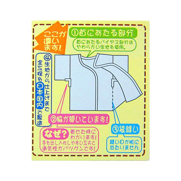 縫目が当らない袋縫い。生成り色の国産の3枚組短肌着です。