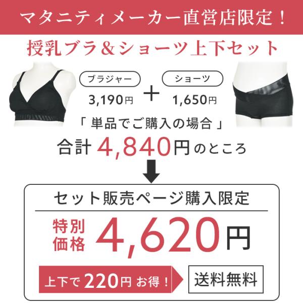 \セットで220円OFF/ 伸縮性の高い天竺素材を使用した、すっきりシンプルなデザインの授乳ブラとショーツの上下セット。マタニティメーカー直営店限定で単品で購入するよりセットのほうがお買い得です。