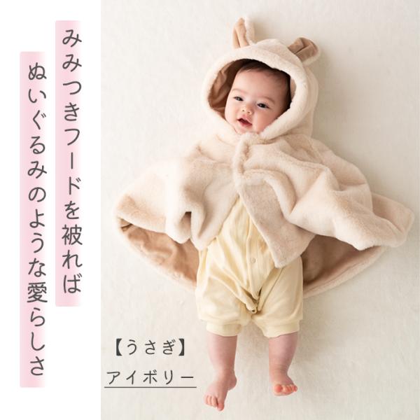 検索用: 赤ちゃん あったか 防寒 ファー ボア フリース くま うさぎ 耳付き フード 秋冬 RIO リオ 出産祝い ギフト プレゼント かわいい おしゃれ