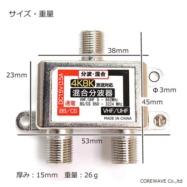 TVアンテナ分波器 4K 8K BS/CS/UHF/VHF/FM/地デジ対応 コアウェーブ CW-275TV